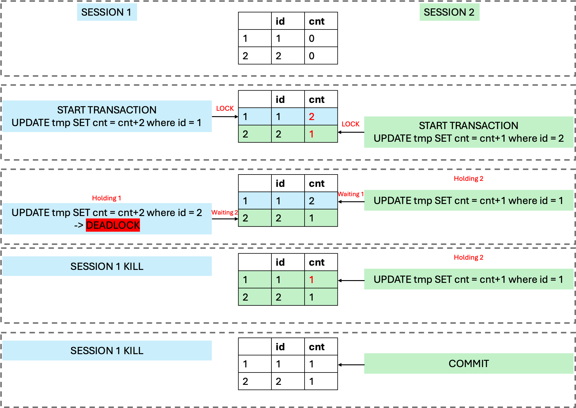 UPDATE tmp SET cnt = cnt + 1 WHERE id = 1; -- ๋๊ธฐ